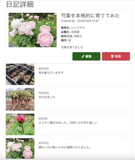 日記をクリックすることで成長段階を含めた日記の詳細を見ることができます。